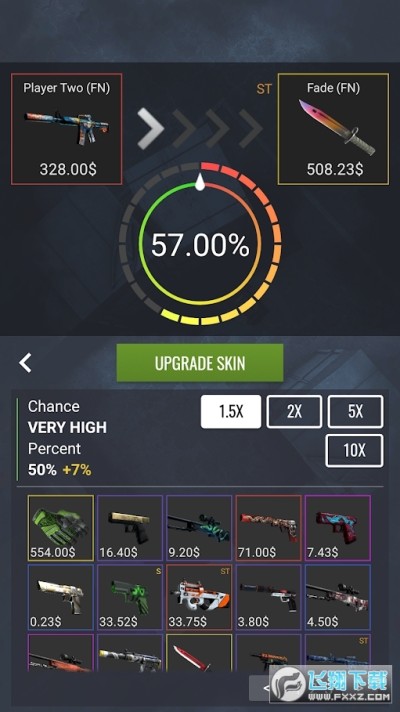 升级器-将皮肤升级到原始值的10倍。如果成功,您将赢得新的皮肤;否则,您将失去原来的皮肤!