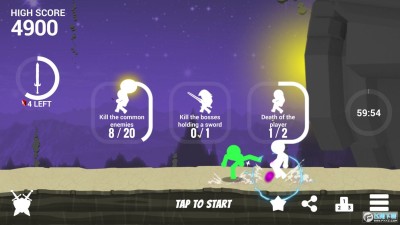 4、玩家在游戏选择火柴人搭配上顺手的武器后,进入格斗场景与敌人进行格斗。
