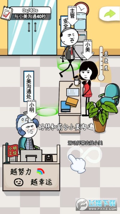 3、在工作的过程中玩家要利用一切机会进行摸鱼,不被同事与老板发现。