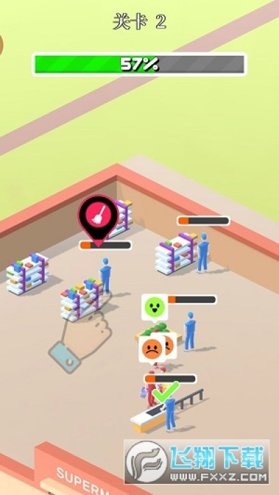 1、摆放不同的商品进行合理的摆设,带领你的超市慢慢变强,变得火爆;