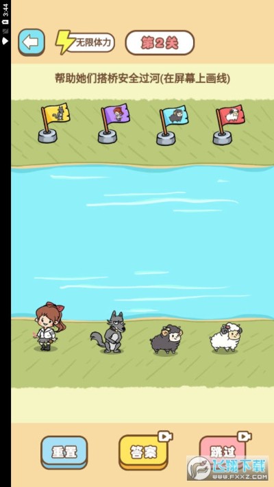3、而且每关都会给玩家来不同的过河挑战,不断的帮助关卡中的人物渡河来体验全新的闯关乐趣吧。