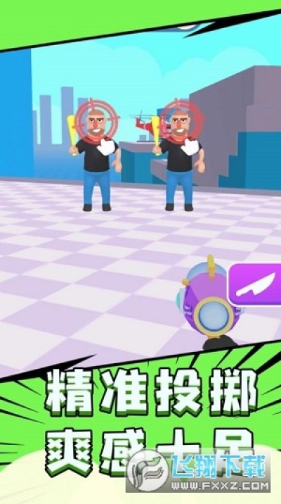 掌握飞刀技能去击杀面前的敌人,每击杀一位敌人可以获得相对应的奖励,精准的投掷手中的飞镖来完成任务挑战和目标,解锁更多的内容和难度。
