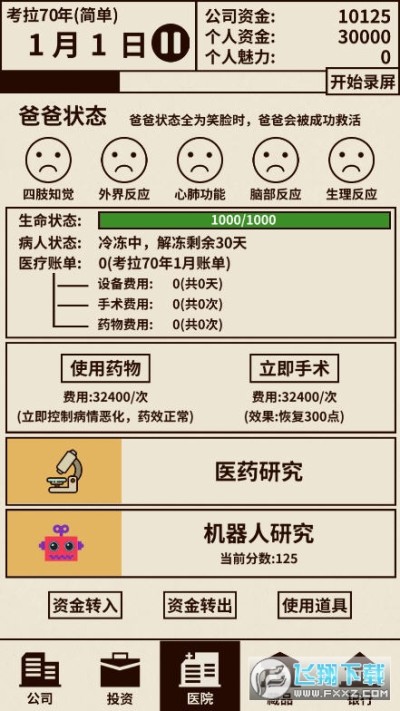 爸爸活下去免广告破解版是一款休闲模拟类游戏。董事长父亲病重垂危,巨额的医药费需要你来承担,父亲只留给你一家食品公司,你需要管理公司生产来赚取资金,并且及时医治父亲,如果父亲不幸去世,则游戏结束。