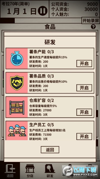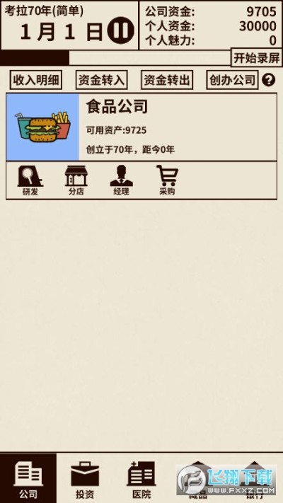 1、发展经营不同类型公司:前期发展运营小型食品工厂,你需要通过采购原材料,投入合适比例的人力到生产线及销售线制造销售产品,生产原料及产品的采购销售价格每天会随机波动。后期开拓服装、汽车、人工智能等公司。