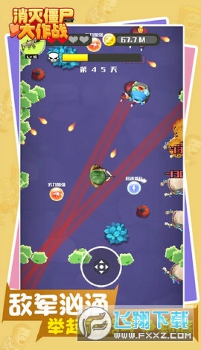 消灭僵尸大作战是一款非常好玩的动作射击类手机游戏,游戏中到处都是僵尸,玩家们要小心不要被它们咬伤哦,为角色人物升级提升战斗力,玩家只需点击屏幕射杀僵尸即可,有兴趣的玩家快来下载吧。
