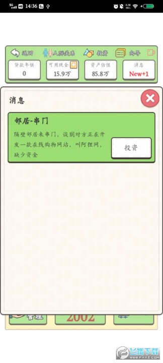 1、回到2000时代去购买增值的房产进行骰子和经营获得更多的资产。