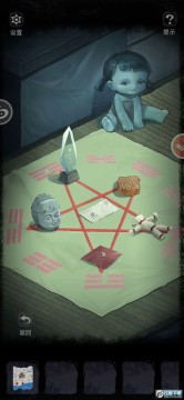 中间得到筷子,拉开帘子第二格右边得到玻璃瓶,中间得到黄符左边帘子旁得到火柴盒,柜子中间筷子筒下方压着的纸条有两个小知识。柜子旁火炉边得到煤钳,中间水池里得到丝瓜瓢。厨房左侧煤气炉放上铁锅,点击水壶倒水,用火柴盒点击炉子下方烧水,用玻璃瓶点击水面,放入丝瓜瓢,得到蘸满白醋的丝瓜瓢。用它擦除柜子第二格盘子下面,得到密码“开门七件事”即“柴米油盐酱醋茶”,按照笔画顺序依次点击柜子下方(止匕木米氵由土卜皿丬夕酉酉昔艹人朩),得到面粉。再次点击煤气炉,倒水,点火,放入面粉,用筷子粘上浆糊。回到院子里,把八卦镜挂在树枝上(最底下那个),然后打开宣传栏,把浆糊放在最左侧,贴上黄符。点击大门下方,用煤钳拿到钥匙串,回到楼上,用钥匙串打开最右边的房门。进屋,右侧桌子上得到合照,掀开桌布。退回房间外侧,左侧沙发上得到香烟,右侧电视机下得到女孩照片,中间桌子下面的罐子里得到一撮米,桌子的格子右边得到打火机,左边得到一捆香,打开桌上的本子,把四张照片放上去,把香烟放在烟灰缸上,用打火机点燃,得到密码061397,打开房间里侧左边衣柜里处于下方的密码箱,得到手钻和钥匙。拉开房间里侧床上的床帘,观察墙上的涂鸦,解开旁边桌子上的五角星密码(这个地方我是看广告的,看不太懂它的顺序是从哪里得出的)“左,右,左下,中间,右下,上”,得到录像带和缝纫机。用钥匙打开房间外侧右边电视机下面的柜子,放入录像带,到房间里侧桌子上拿小鱼刺绣给爸爸。过完剧情点返回。到房间里侧衣柜里,点衣服,用手钻点击小洞,上阁楼。床上得到一块黄色的布,右边桌子上得到棉线卷和螺丝刀,点那一排书里有一本五行解读。阁楼左侧柜子第一层得到一张画,第二层得到指甲刀,还有一本叫降头的书。到厨房右侧柜子,用棉线卷点击下方的稻草得到稻草人。回到房间里侧,用缝纫机缝制黄色的布得到有图案的布。回到大树旁,用螺丝刀撬开大树旁的桌子上的棋局(右侧撬开),完成拼图得到玉元宝。把玉元宝放到土地公手上,把米放在土地公前面的炉子里,插上香,用打火机点燃,然后点大树上的蜂窝得到蜂巢,点石像(略高能)得到佛头。点击大树旁沙坑左上角得到水晶奖杯。到院子的大门用指甲刀给爸爸剪指甲。回到阁楼,把有图案的布放到床上,按照《降头》中所说的,如图所示放上物品。