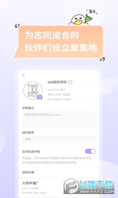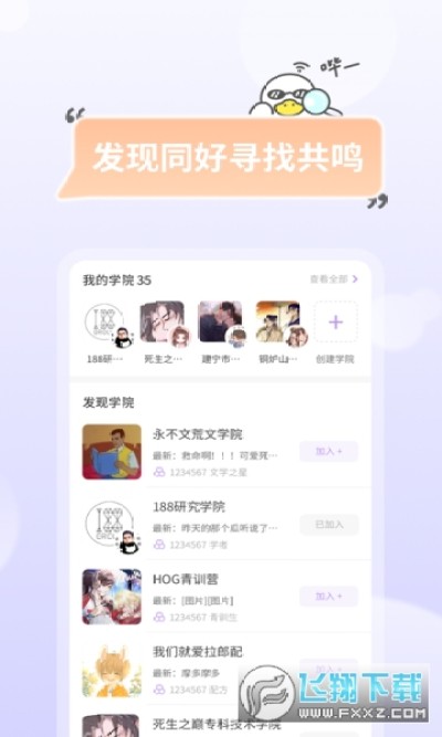 2、为志同道合的伙伴们设立聚集地,加入学院,解锁不同领域属于你的不同身份,发现同好,寻找共鸣