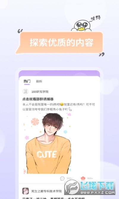 鸭饭app下载分享给大家。鸭饭是一款非常实用的论坛类聊天交友平台,你可以在平台分享你个人的喜怒哀乐,图片、视频、文字分享都可以,通过兴趣分享交友,找到志同道合的朋友,需要分享心事就来鸭饭试试!