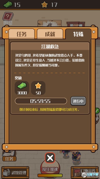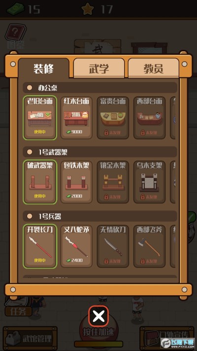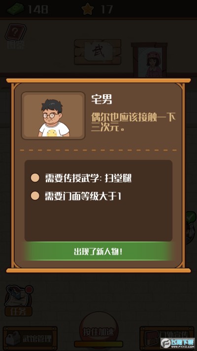 我要开武馆破解版无限金币版是一款Q版卡通风格的模拟经营游戏,在游戏里扮演武馆的馆长,购买设施来迎接各种客人,不断解锁更多的武功吸引更多样的客人,升级自己的设施提升赚钱的效率,还有多种小游戏可以自由体验,喜欢的小伙伴不要错过!