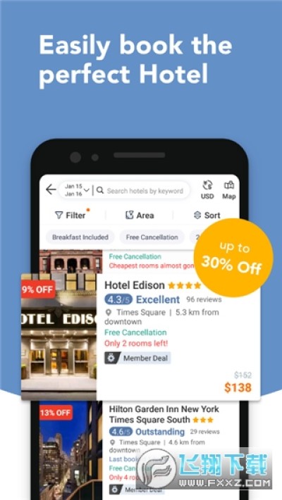 内建地图功能,可以马上依照地区显示酒店位置及房价,饭店比价超简单。