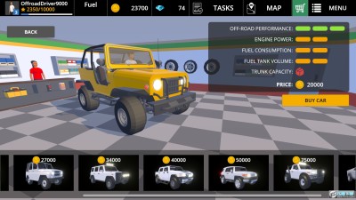 达到一定等级后,您将有机会参加越野比赛。每场比赛都会为您提供丰厚的奖励,用于调整汽车或在汽车经销商处购买新车。首先,游戏是关于汽车的,所以游戏有汽车调校,在汽车服务中可以使用,在这里你也可以改变汽车的颜色。这座城市还有你的私人车库,你买的所有汽车都存放在那里。