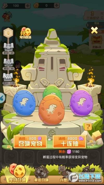 10、60关开助阵第二条龙,这里可上阵不同技能得辅助龙。小技巧,宠物星级越高,助阵属性越强!