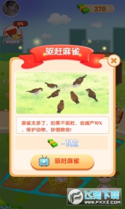 一起看大米游戏是一款休闲模拟经营向游戏,游戏中玩家可以不断进行开荒,解锁更多土地进行稻米种植,驱赶麻雀升级你的土地等级,多种趣味经营玩法等你体验,游戏最低0.3元起低门槛提现,对游戏感兴趣的话不妨点击下载试试!