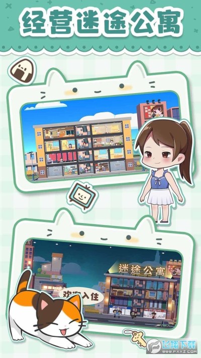 嗨~你想体验经营公寓的乐趣吗?坐落在星海城的迷途公寓正在招募管理员哦!这可是个大好机会!这里的主人是位远近闻名的爱猫慈善家,人们都叫她猫婆婆。最近她计划出门远行,因此需要一位可靠热心的代理人来管理迷途公寓!迷途公寓是一栋漂亮的大楼,这里有各种类型的公寓房间,此外还有餐厅、快递、超市等为居民提供服务的商铺。