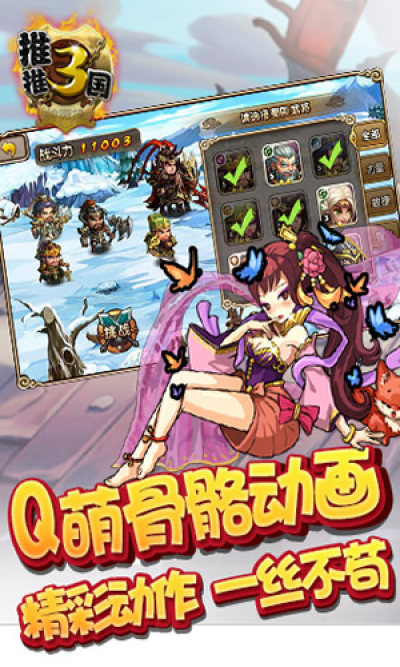 推推三国是一款Q版三国类型的策略手游,所有三国名将人物的全新设计,加上自由站位的对战模式,让游戏本身可玩的内容和搭配变得非常的多,搜集自己的最强武将打造最佳阵容。