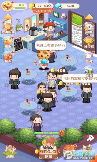 我要开店暴富游戏是一款竖版的休闲经营类型游戏,游戏中玩家可以经营你的店铺,在这里自由进行装备,招募优秀的员工招待顾客,完成游戏任务即可领取奖励,还可以参与抽奖活动赚奖励。对游戏感兴趣的话不妨点击下载试试!