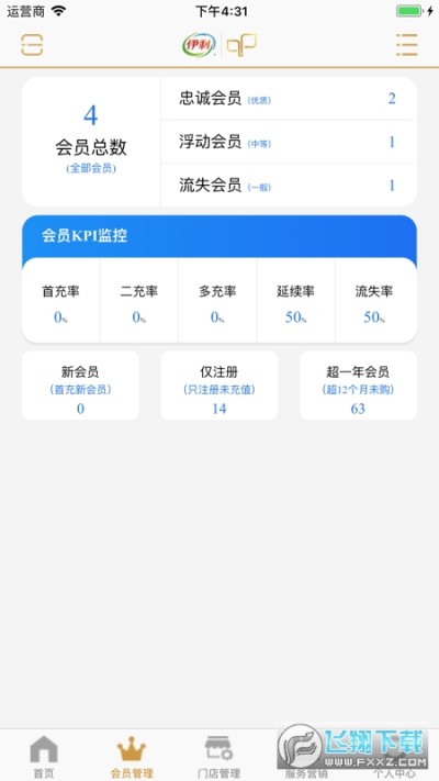 3.主要包含首页、会员管理、回访/活动和通知公告四大模块。