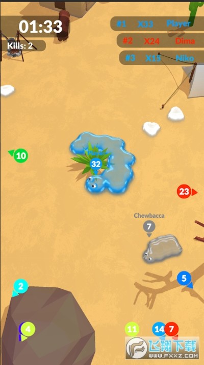 2、和其他玩家进行对抗,快速吞噬增大体型,快速吞噬敌人能加速自己的成长进度。