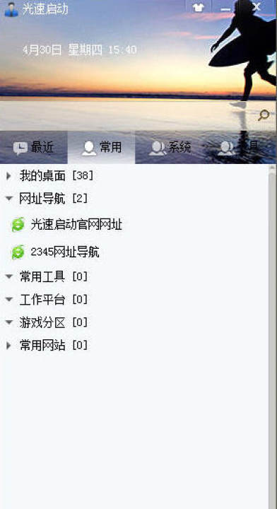 光速启动是一款桌面管理快捷启动的软件,本软件采取类似QQ界面设计风格,精益求精,力求与用户使用习惯 保持一致,同时光速启动采用最新高速缓存机制,能以最快速度启动软件、文档,是办公室必备软件。 同时软件还集成了老板键、屏幕亮度调节、挂机锁等常用功能,方便实用,快捷办公。