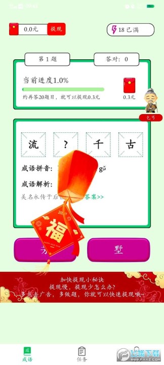 典典学习红包版是一款成语答题闯关游戏。丰富的游戏内容趣味十足,边玩游戏边学知识,还有现金红包等待你来领取,实现躺在家里也能轻松赚零花钱,感兴趣的小伙伴们快来下载游戏试试吧!