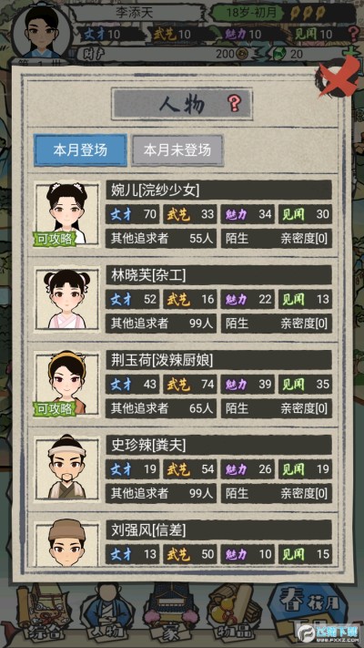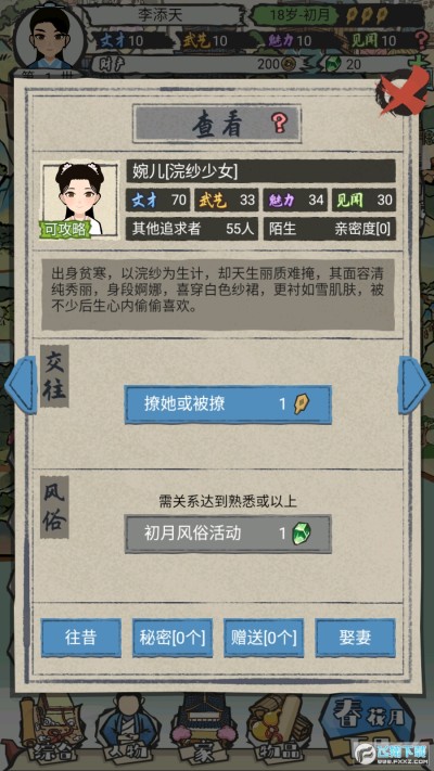 2、子嗣系统:培养子嗣,游学科举,相亲嫁娶。