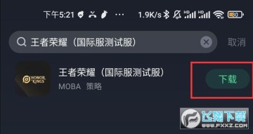 卸载其他渠道下载的游戏安装包,从奇游端内搜索【王者荣耀(国际服测试服)】进行下载