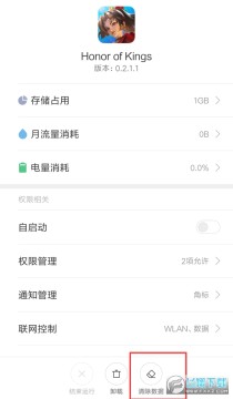 在手机应用管理系统找到【Honor of Kings】,选择清除数据,清除全部数据和缓存,再加速重启游戏。