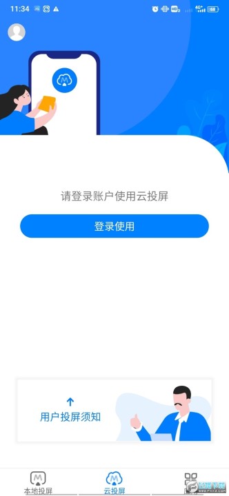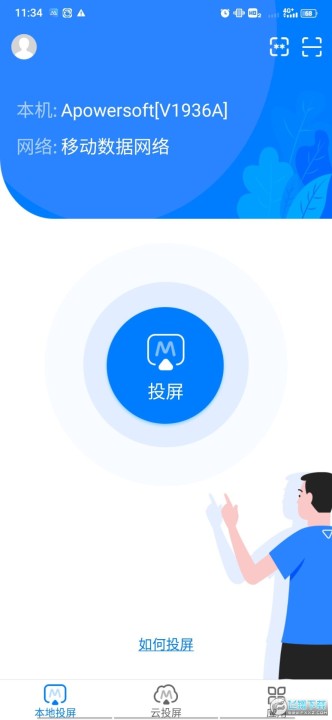 1、在本站下载安装傲软投屏软件,进入首页点击投屏;