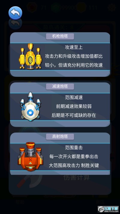 3、角色类型,形形色色的机枪炮塔和高射炮塔是可以去选择的,属性可以免费的去进行解锁和使用.