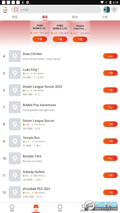 顶级应用程序和游戏列表。