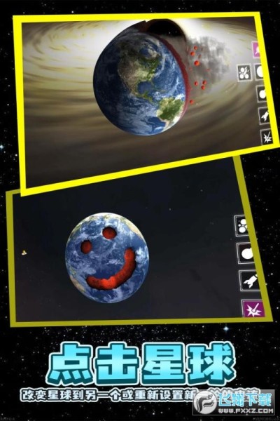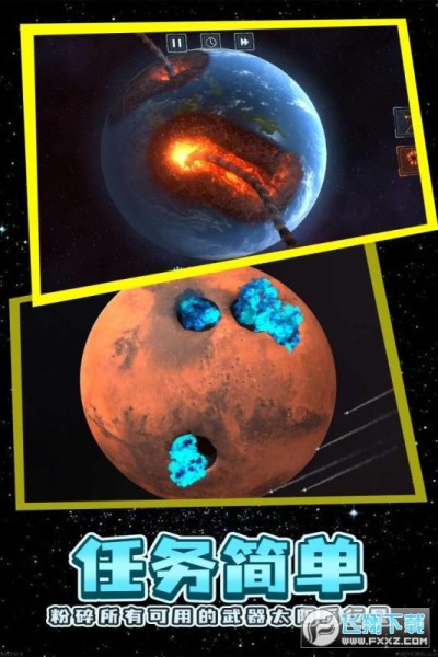 残缺宇宙游戏是一款星际太空题材休闲向游戏,游戏中玩家将进入奇幻的太空世界之中,你可以选择不同的星球,利用炸弹或者火箭等等重型武器来进行摧毁,酷炫逼真的爆炸特效体验,对游戏感兴趣的话不妨点击下载试试!