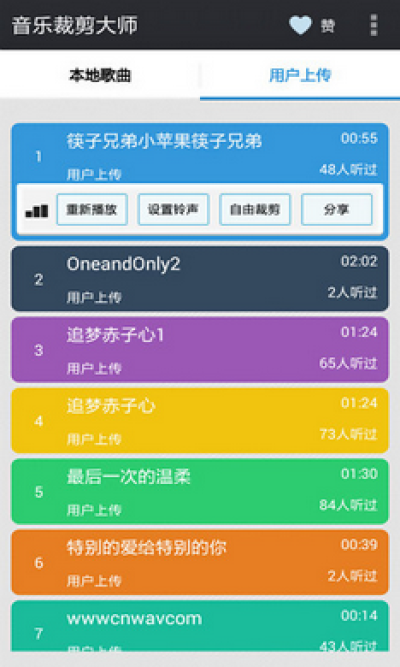 3.不仅支持强大的音乐裁剪,用户还可自己录制音乐,并设置为系统,闹钟和短信音乐。