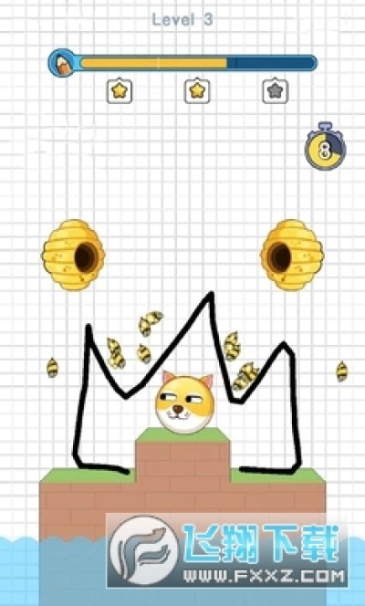 哎呀! 这些蜜蜂很危险!道奇有危险! 你能保护 Doge 免受坏蜜蜂的侵害吗?触摸屏幕画一条线。坚持 10 秒,防止蜜蜂伤害狗狗。用更少的墨水获得更高的费率!