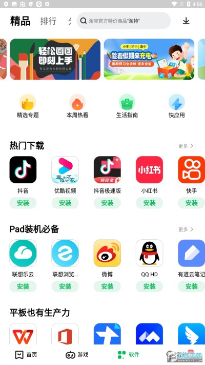 联想应用中心app最新版是为给用户准备的联想应用商店软件,海量精品的软件资源和游戏资源实时为你更新,都是经过人工检测的优质资源,正版无毒大家可以放心的下载安装;在联想应用商店用户还可以一站式的进行本地软件管理服务,自由的安装卸载各种软件和游戏,有需要的联想用户赶紧来本站下载联想应用商店最新版吧。