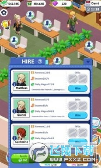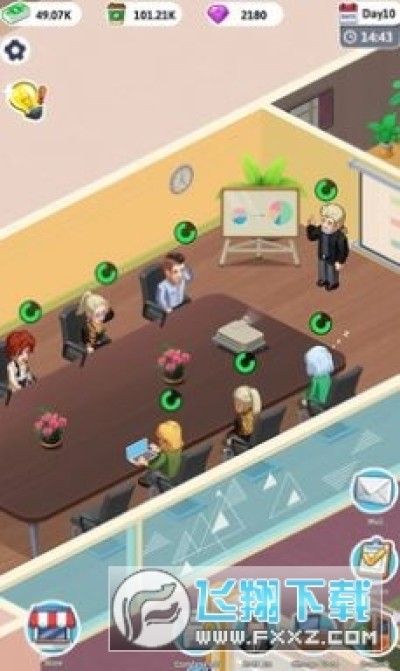 游戏非常有趣,当老板的感觉,可以为了公司管理好员工,为它们提供舒适的办公环境,放置它们办公睡觉和谈恋爱打架等,你也可以很自由的开除你的员工,想干嘛就干嘛。
