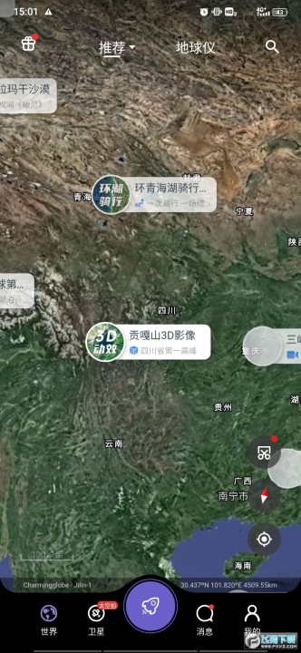 共生地球最新版是款国产类型的谷歌地球,在这款app中用户可以看到世界上所有的地方,包括清晰可见的地貌,而且还有各种山川美景都可以欣赏,喜欢的小伙伴快来下载试试吧!