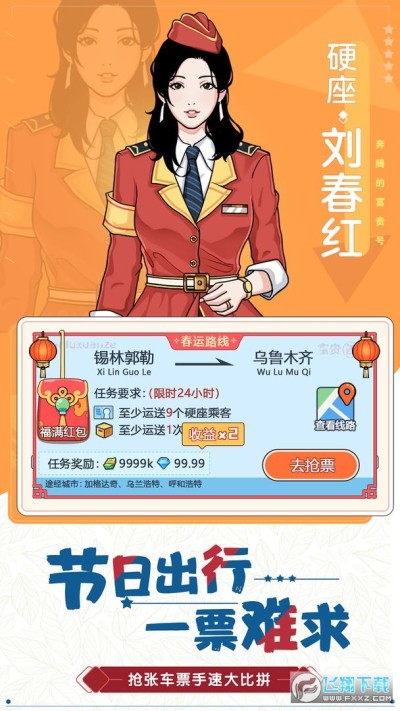 奔腾的富贵号游戏是一款休闲模拟养成向游戏,游戏中玩家可以自由解锁不同的省份,经营你的列车车厢,招待更多的顾客进行消费,还可以一键进行托管挂机玩法,游戏中免看广告即可获得奖励,对游戏感兴趣的话不妨点击下载试试!