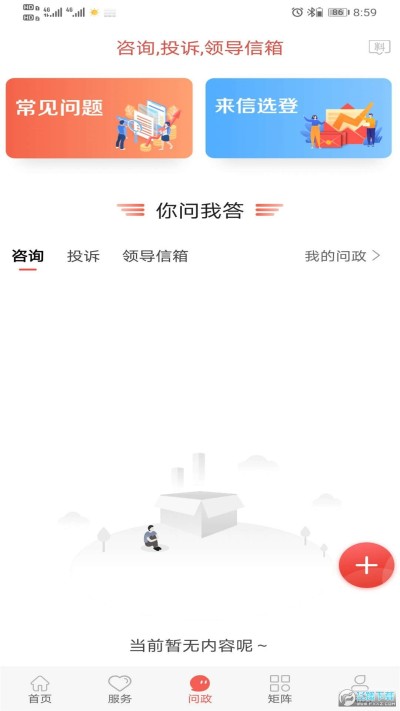 5、点击进入问政页面,即可查看常见问答、来信选登、我的问政等