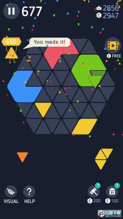 做个六边形破解版无限金币版是一款魔性的休闲益智类手游,游戏里玩家可以挑战简单的拼图游戏,将相同颜色的三角形在游戏里组成六边形完成挑战,游戏难度随着关卡不断的增加,玩家可以挑战自己的极限享受烧脑的玩法,喜欢的小伙伴快来试试吧!