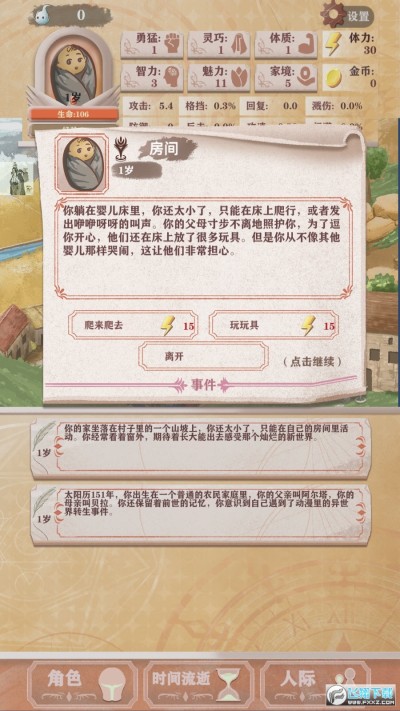 异世轮回录作弊菜单折相思破解是一款魔幻风格的异世界RPG游戏,玩家可以选择不同的出生和天赋转生进入世界,在成长过程中选择不同的选择提升自己的各种能力属性,还有丰富的随机事件需要应对,在游戏里体验不同的人生,丰富的分支故事剧情等玩家们来体验,喜欢的小伙伴快来下载吧!