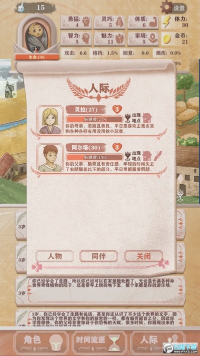 想必去年大家已经玩过很多以角色一生的随机事件为主要内容的游戏了。但是我个人的体会就是大部分游戏只能做到随机,而没能做出事件的连贯性。玩家只能看着一个个割裂的事件蹦出来,而不能以自己的意志影响事件进程。这一点让我自己作为游戏玩家也觉得很不尽兴。