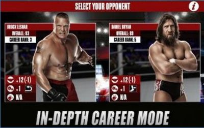 WWE 2K既不是卡牌,也不是混搭的格斗类型,而是纯正WWE摔角格斗游戏。因为游戏是基于主机版和电脑版《WWE 2K15》的基础上开发的,游戏品质媲美主机游戏。玩家可以从一系列知名拳手中选择自己喜欢的角色,然后展开一场场激烈的格斗与厮杀,角逐最后的冠军。游戏共有三个模式,巨星模式,职业生涯模式和多人匹配赛事模式。