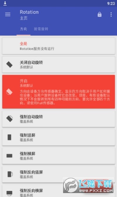 9.强行自动:强行自动旋转屏幕方式,但会覆盖应用程序设置