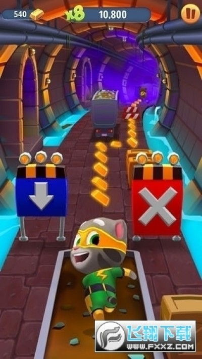跳跃、滑动和躲闪是《汤姆猫跑酷》最基础也是最重要的操作。会说话的汤姆猫和他的朋友们如同身怀“凌波微步”的武林高手般,在不同的场景中闪转腾挪。无论挡在你前面的是路障、车辆或者水坑,只要及时进行规避操作,便可轻松化险为夷。在此为大家分享一个小窍门:在接触障碍物的一瞬间进行闪避操作,角色并不会“扑街”,只会暂时出现头冒金星的状态,而且绝对不影响后续操作,喜欢玩心跳的小伙伴不妨一试。