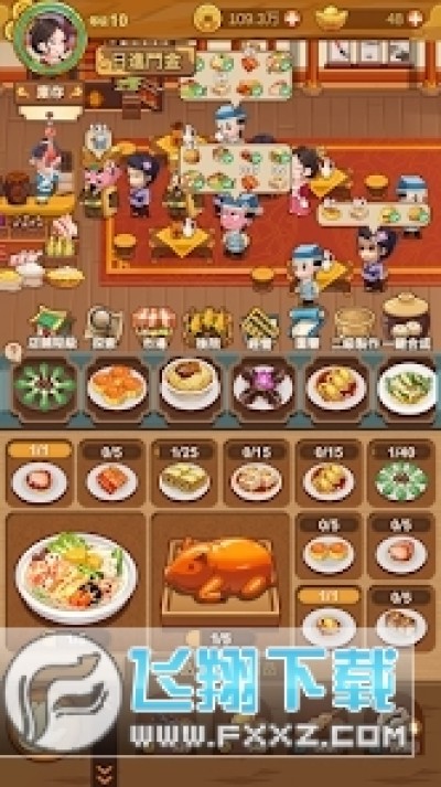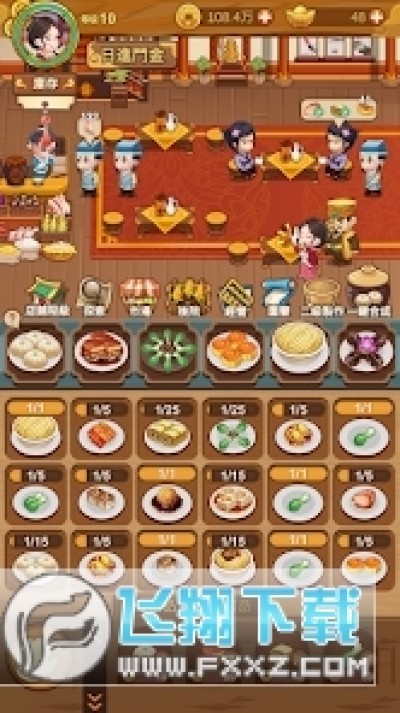 「菜品多样,美味升级」 川、鲁、苏、粤四大菜系应有尽有,还能通过将低级菜品合成,升级为色香味俱全的高级菜肴,赚取更多银两!