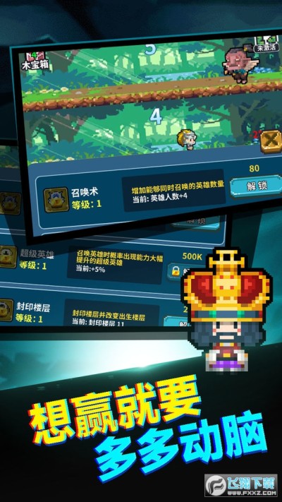 真男人就上10000层免广告破解版最新版是一款像素风格的休闲放置类游戏,玩家可以控制自己的角色不断的杀怪闯关,通过击杀敌人不断的积累更多的经验,提升自己的战力进入到更高的区域,丰富的养成内容可以不断的强化自己,喜欢的小伙伴快来下载吧!