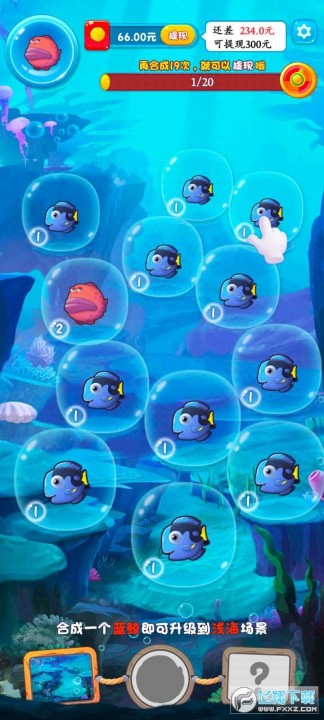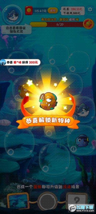 2、所有鱼都解锁,获得大红包。 是当下流行的合成游戏! 让玩家养殖各种鱼类。