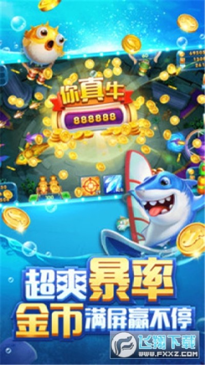 游戏厅经典街机捕鱼风格,100%还原绚丽画面、万倍炮台,爆机变土豪。