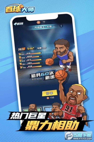 《百球大师》是一款轻松休闲的篮球游戏,在游戏中玩家通过对知名球星收集和培养,球队经营和管理,多变战术和实时选择决定胜负。比赛过程全程展示,让你清楚看到谁是真正的投篮王。
